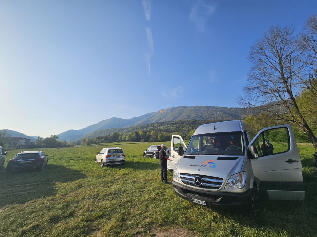 Mit Anhänger im Schlepptau und gut vier Stunden Fahrt auf dem Tacho – plus einer ungewollten Bekanntschaft mit dem italienischen Tempolimit – landete die Swissgliders-Gruppe nicht wie ursprünglich geplant am Monte Maddalena, sondern in der Bergamo-Region. Reiseleiter Jonas Thommen hatte die Lage schnell im Griff: Von ganz oben gestartet, empfingen uns breite Thermikschläuche und erste Flüge von bis zu einer Stunde. Als wäre Norditalien über unsere Ankunft informiert gewesen.