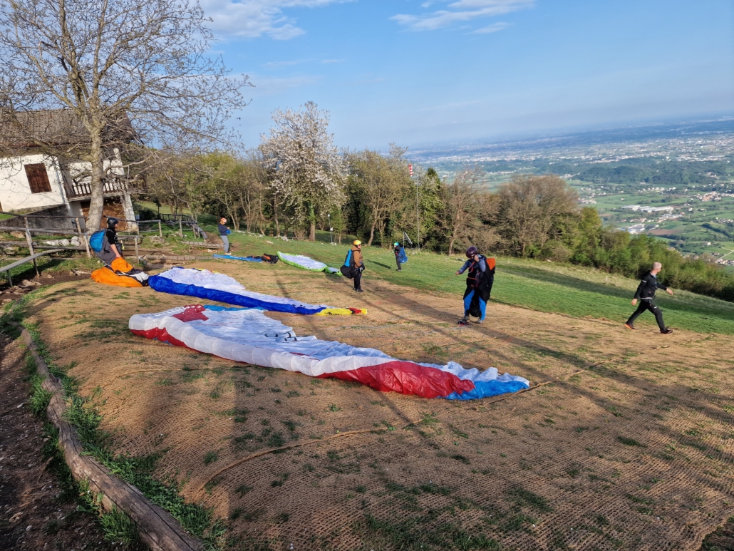 Mittwoch öffnete Jonas ein neues Kapitel: das Fluggebiet Santa Maria. Die Eindrücke dort werden lange nachwirken. Ein Teilnehmer erwischte den Rückenwind aus Osten und segelte damit vollständig zurück nach Bassano – er sass bereits entspannt da, als der Rest der Gruppe noch im Auto sass. Ein anderer Teilnehmer meisterte eine Landung in sehr schwierigem Gelände – gut ausgegangen, aber eine Erinnerung daran, dass die Berge stets ihren eigenen Rhythmus haben.